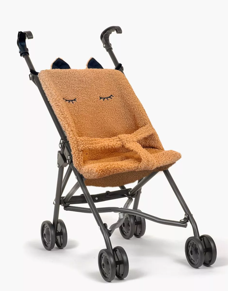 Складана лялькова коляска з сидінням з букле та вишитими деталями