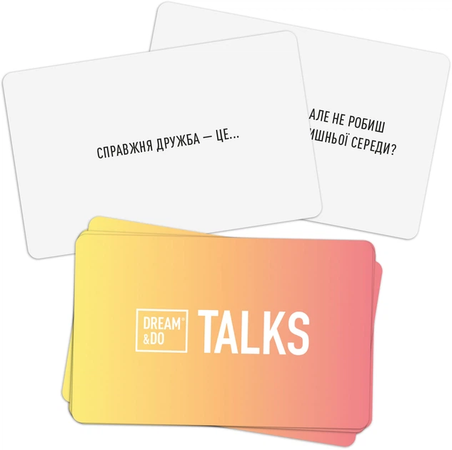 Dream&Do Talks – Friends — це ідеальне рішення для тих, хто хоче вивести посиденьки з друзями на новий рівень. Замість звичних розмов про роботу чи погоду, ця гра пропонує зануритися у світ щирих історій, смішних спогадів та несподіваних зізнань. Це гра-інструмент для створення справжнього «connection» у компанії.