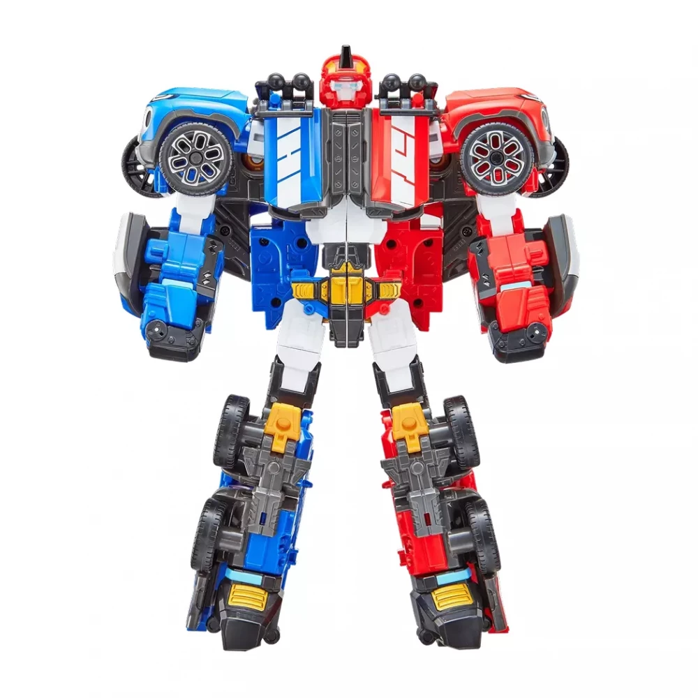 • Подвійна трансформація: Робот розділяється та перетворюється на дві різні машини. Це дозволяє дитині розігрувати сценарії, де герої діють одночасно в різних місцях, або об’єднуються в одного могутнього захисника.