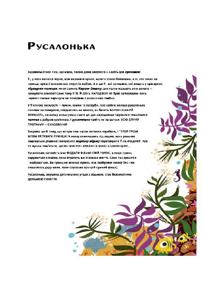 А ти хотіла б стати принцесою? На сторінках цієї книжки ти прочитаєш історії про найвідоміших принцес — Білосніжку, Русалоньку, Попелюшку, Рапунцель та інших казкових героїнь.