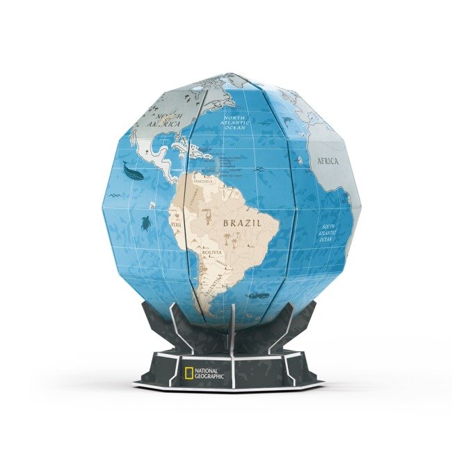Формат 3D-Пазла: Спочатку потрібно зібрати об’ємний глобус із окремих сегментів, виготовлених із пінокартону (EPS). Збірка відбувається без клею та ножиць.