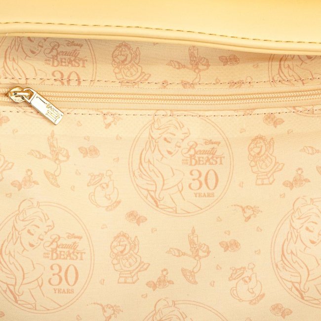Цей рюкзак Loungefly Disney Beauty and the Beast Belle Mini інспірований популярним мультфільмом “Красуня та Чудовисько”. Він відтворює стилістику вечірнього плаття головної героїні мультфільму, Бель. Рюкзак також має зображення деяких додаткових персонажів зі світу “Красуні та Чудовиська”. Внутрішня частина рюкзака виготовлена з тканини і прикрашена численними малюнками, що присвячені мультфільму.