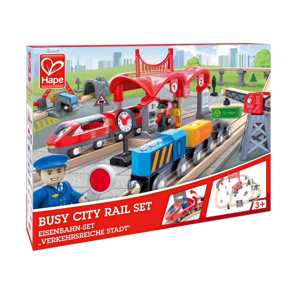 Залізниця Hape “Місто” – це ідеальна гра для маленьких любителів залізниць та пригод. З цим набором дитина може насолоджуватися різними сценаріями гри, від пасажирських поїздок до вантажних перевезень. Всі деталі виготовлені з якісних матеріалів та відповідають вимогам безпеки для дітей. Цей набір розвиває уяву, моторику та творчі навички у дітей.