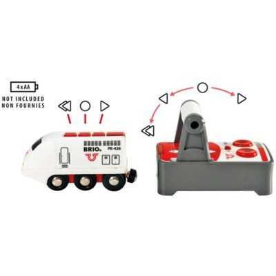 Функції: Локомотив керується за допомогою бездротового пульта. Він може рухатися вперед та назад з різними швидкостями.
