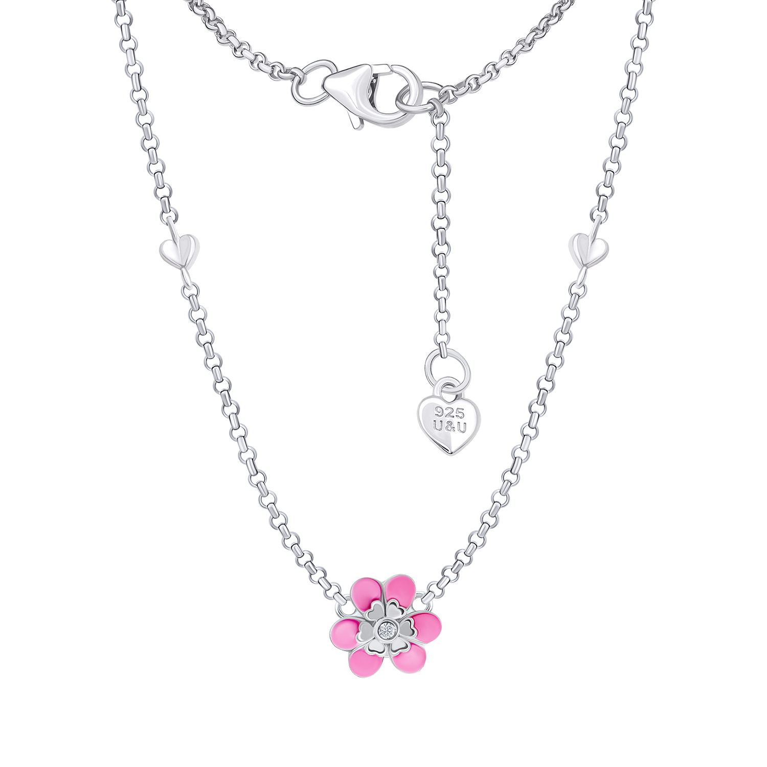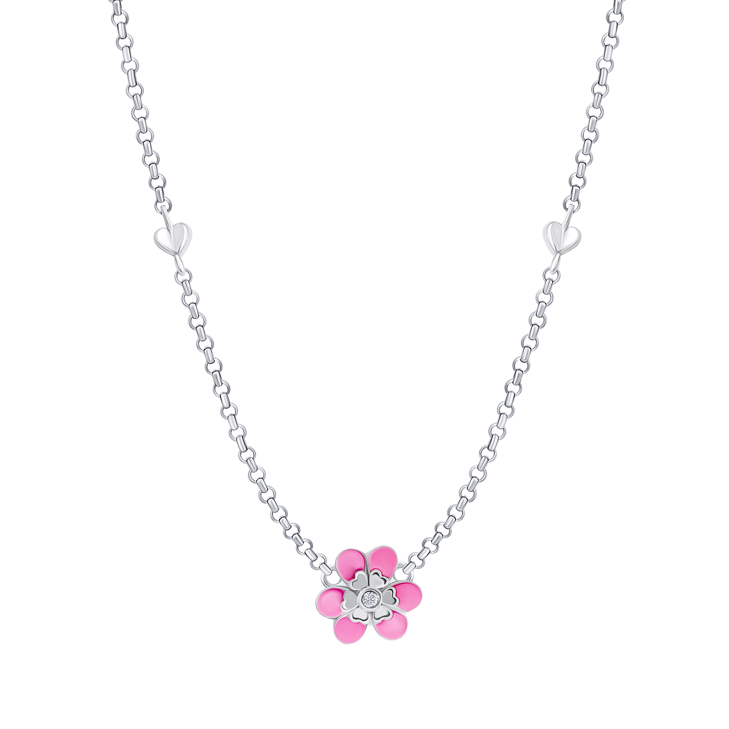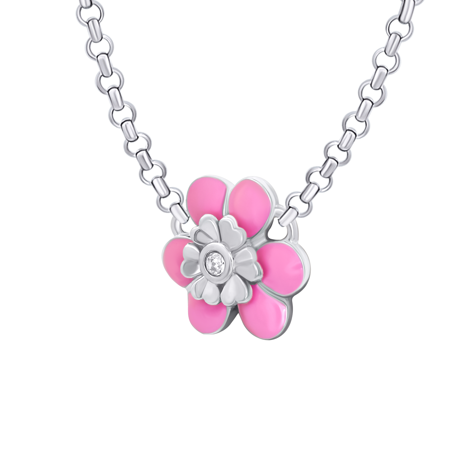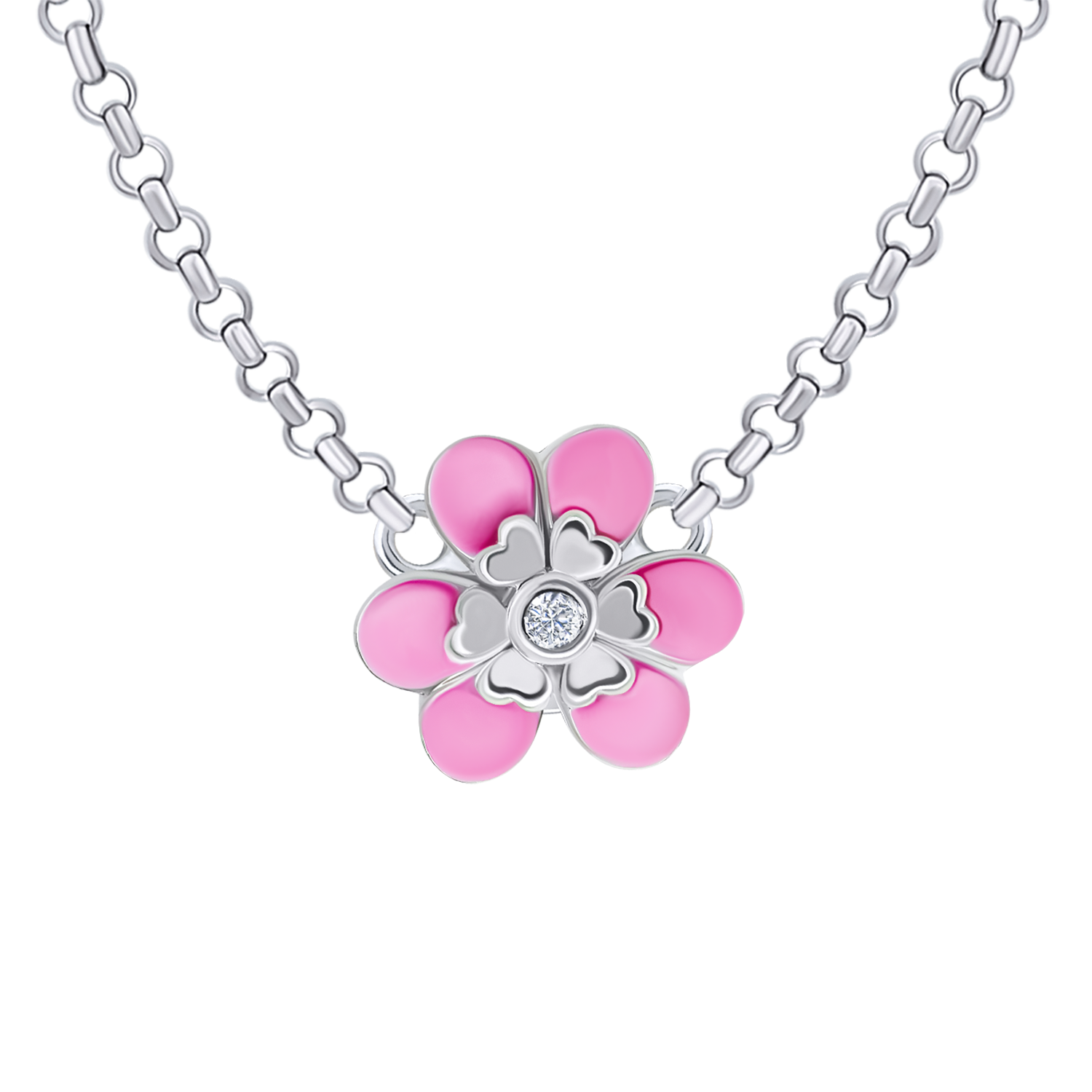 Назва: Кольє Магнолія з рожевою емаллю та фіанітом