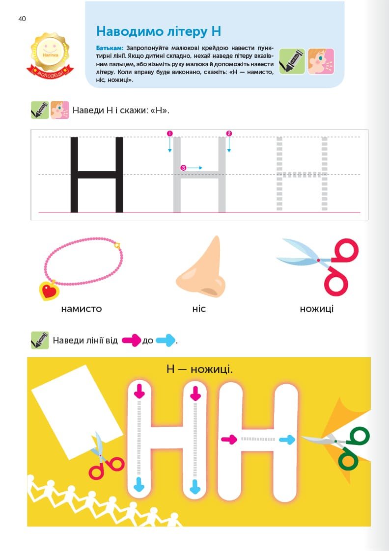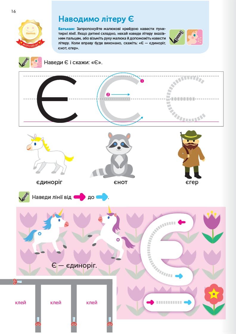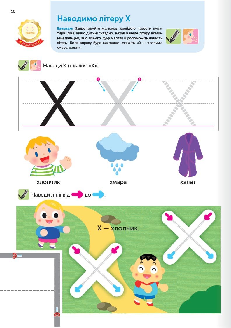Вправи у книжці розраховані на виконання за допомогою та під наглядом батьків. У кожної дитини свої темпи розвитку, і, виконуючи завдання разом, як одна команда, ви робите важливий крок до навчання з насолодою.