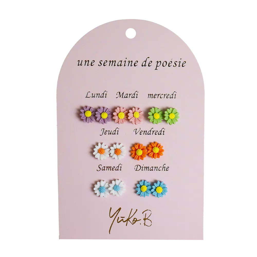 Досліджуйте одне з найпоетичніших творінь року з нашою абсолютно новою колекцією чарівних сережок. Цей набір від Yuko B містить картку з 7 парами сережок, які прикрашені унікальним квітковим малюнком, спеціально розроблених для проколених вух.