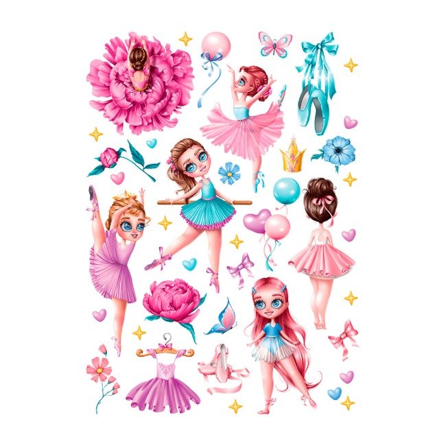 - Набір татуювань присвячений світу балету та танцю. Дизайни, ймовірно, включають зображення ніжних балерин у різних позах, пуантів, балетних пачок, корон, квітів та інших елементів, що асоціюються з балетом та казковими танцями.