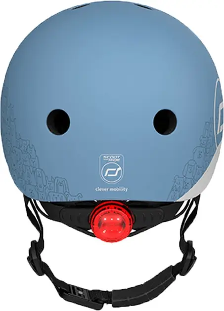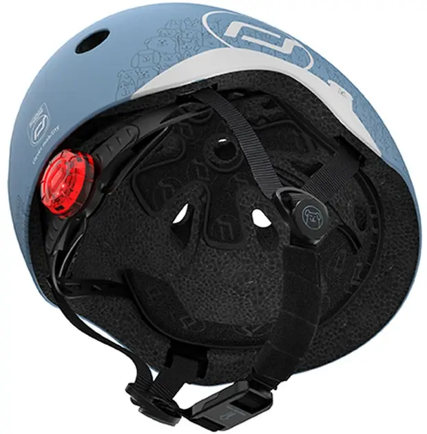 - 1 захисний шолом Scoot and Ride світловідбиваючого сіро-синього кольору з вбудованим ліхтариком.